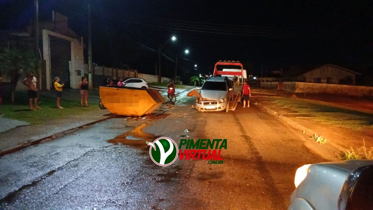 Vídeo: Carro colide com caçamba de entulho Espigão do Oeste