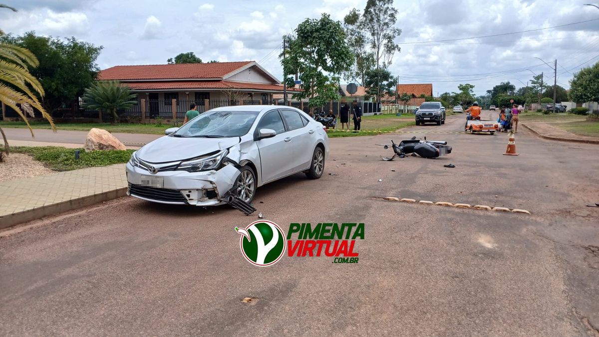 Duas ocupantes de motoneta ficam feridas em colisão com carro em Espigão do Oeste