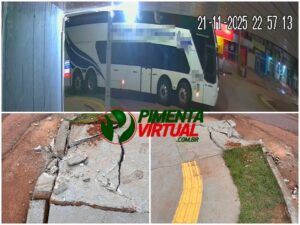 Vídeo: Ônibus destrói calçada e entrada de galeria de chuva em frente à rodoviária de Pimenta Bueno 23/11/2025 Ler a matéria completa "