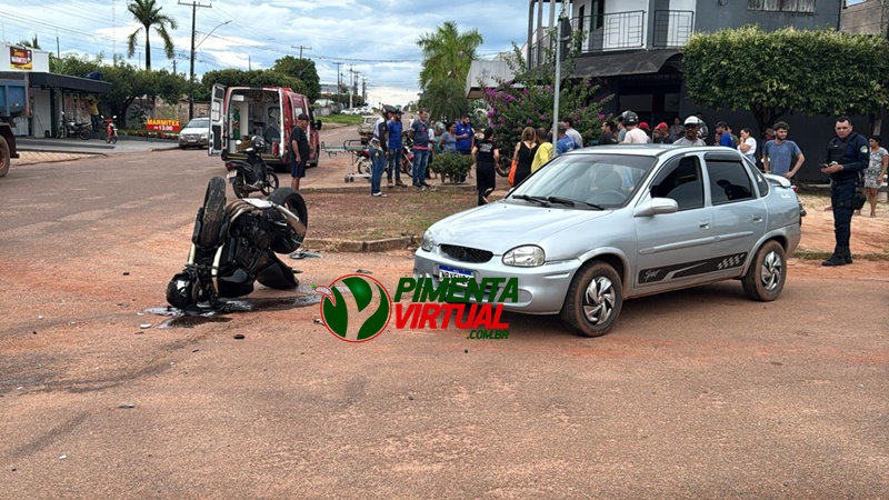 Um acidente envolvendo um carro e uma motocicleta foi registrado na tarde desta terça-feira (03), na Avenida dos Imigrantes, em Pimenta Bueno. A equipe do Pimenta Virtual esteve no local acompanhando a ocorrência.