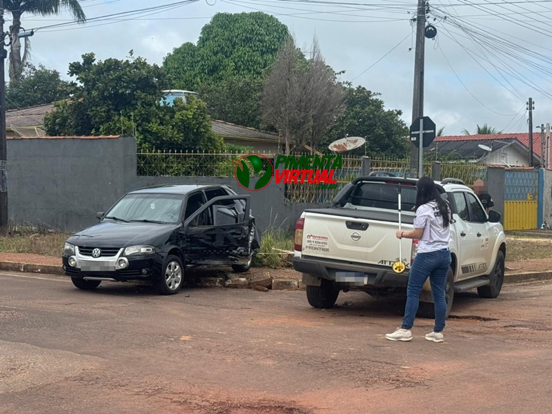 Um acidente de trânsito foi registrado na manhã desta quarta-feira, 25 de março de 2026, por volta das 11h, no bairro Pioneiros, em Pimenta Bueno.
