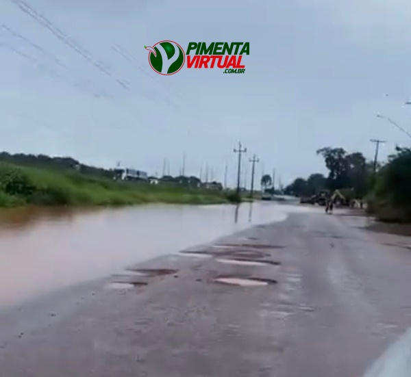Um dos principais pontos afetados foi a marginal da BR-364, nas proximidades da AABB até a região da empresa Castilho, onde o grande volume de água causou alagamentos.