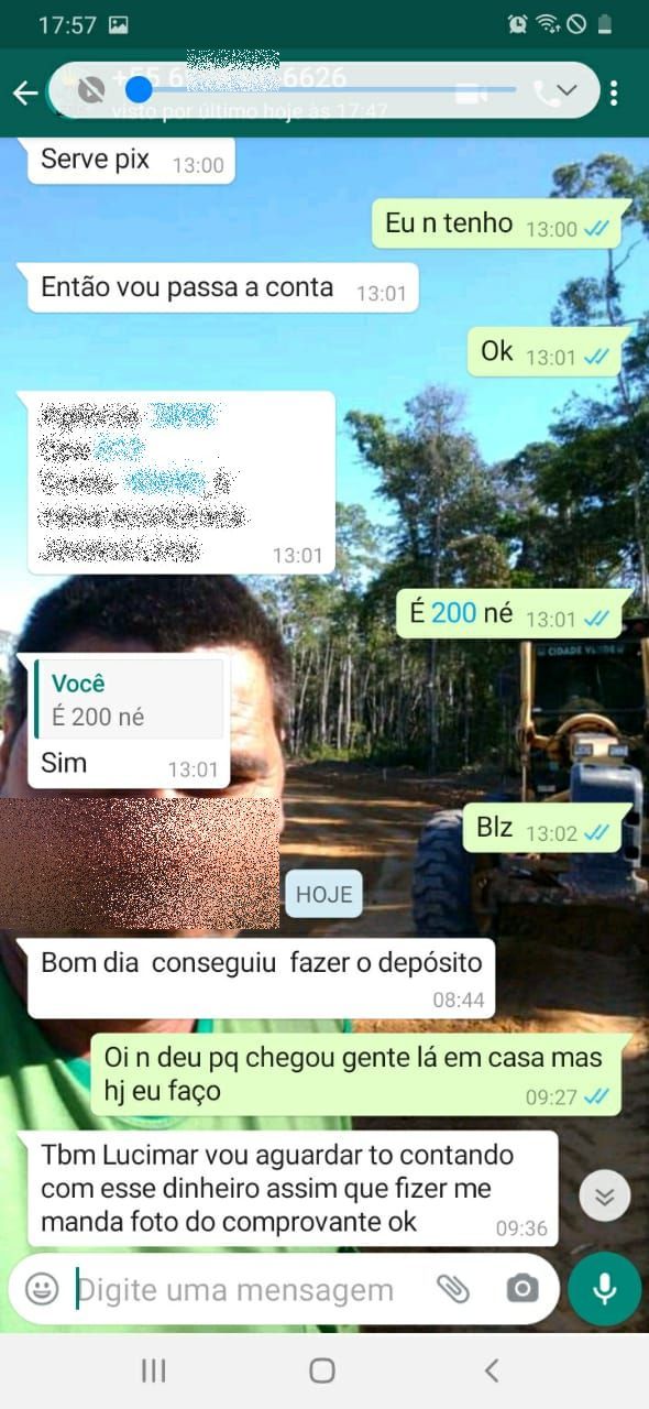O caso começou no dia 18 deste mês, quando a promotora de vendas, Lucimar Vieira Coelho, 42 anos, recebeu em seu WhatsApp uma mensagem de um número desconhecido por ela e que pedia adiantamento “daquele dinheiro”. A pessoa disse que havia mudado de número e esquecido de avisar a ela.