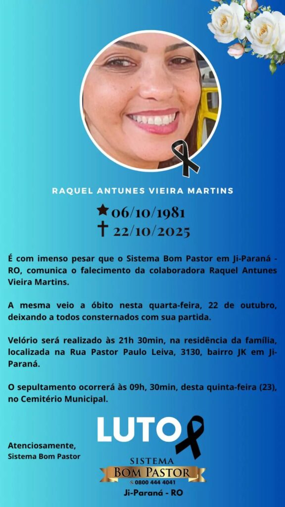Nota de pesar pelo falecimento de Raquel Antunes Vieira Martins
