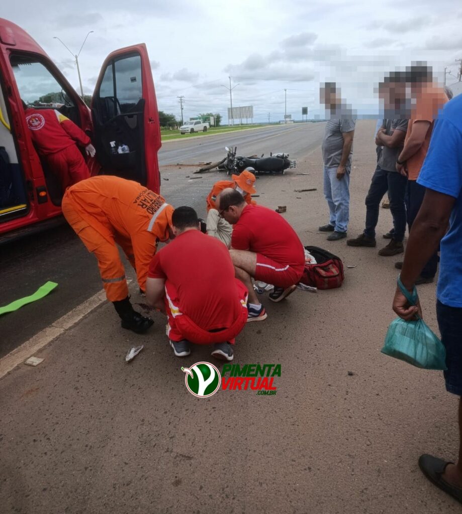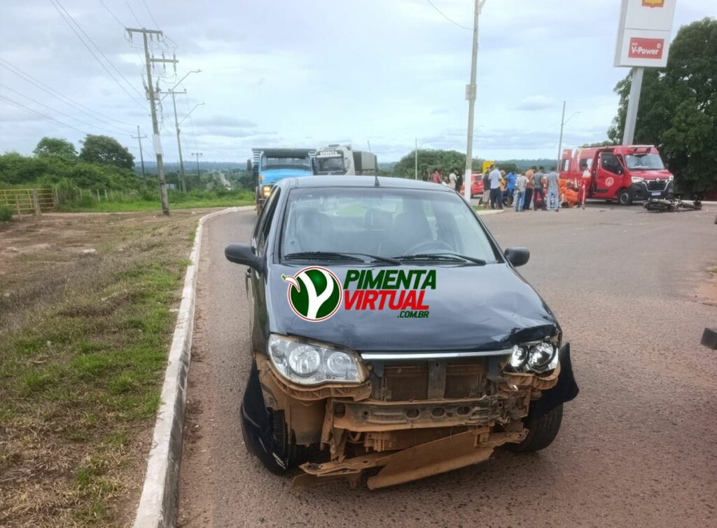 Um acidente de trânsito envolvendo um carro e uma motocicleta deixou um jovem motociclista ferido na manhã desta terça-feira, 16 de dezembro de 2025, na BR-364, no trevo de acesso ao Posto Itaporanga, em Pimenta Bueno. A colisão ocorreu por volta das 11h30.