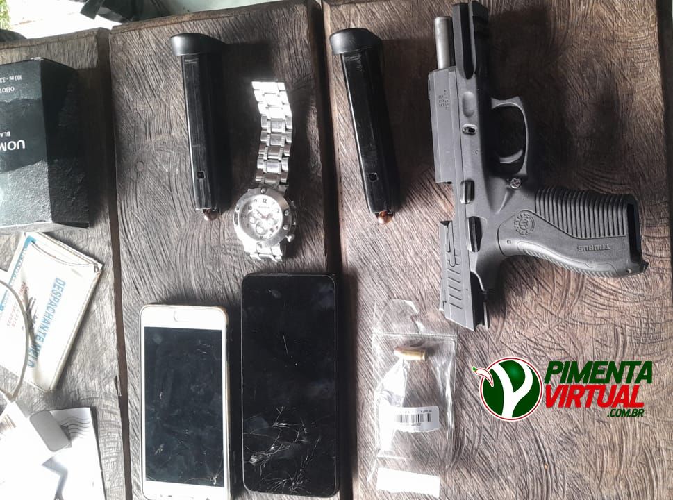 Além do entorpecente e da arma de fogo, os policiais encontraram ainda sete cartuchos calibre 28 e 28 estojos plásticos deflagrados do mesmo calibre, o que reforça a suspeita de atividade criminosa na área investigada.