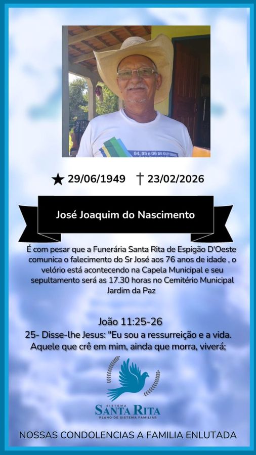 Nota de pesar pelo falecimento de José Joaquim do Nascimento