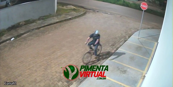 As imagens mostram o suspeito chegando ao local de bicicleta. Em seguida, ele utiliza uma pedra para quebrar o vidro da vitrine, arremessando o objeto por três vezes até conseguir estilhaçar a estrutura.