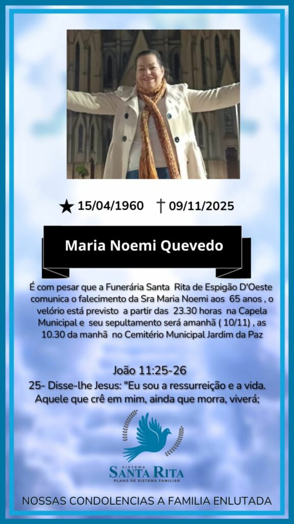 Nota de pesar pelo falecimento de Maria Noemi Quevedo